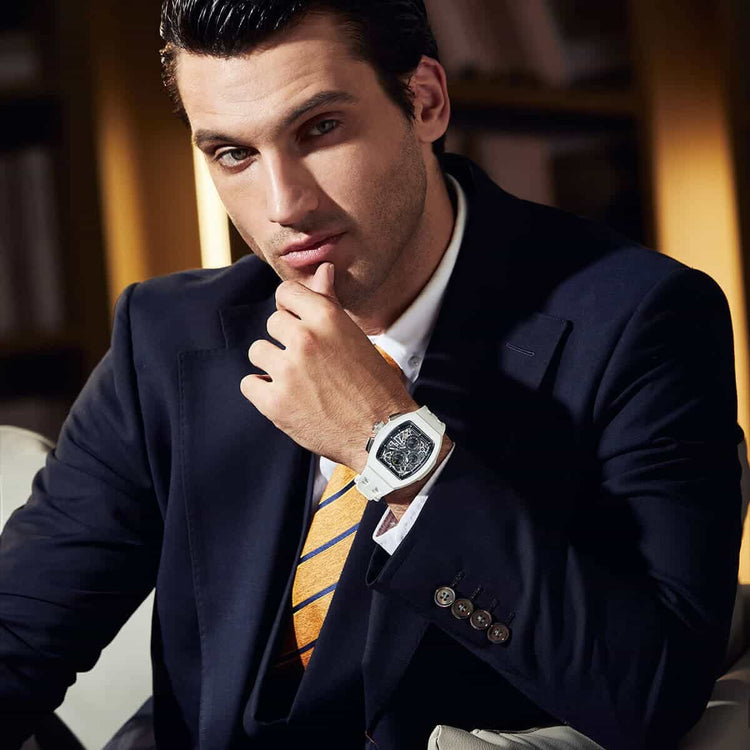 Bold contours meet refined geometry. Every angle of this timepiece is sculpted for strength, balance, and distinction. The design reveals the rhythm of time, transforming every glance into a moment of admiration.