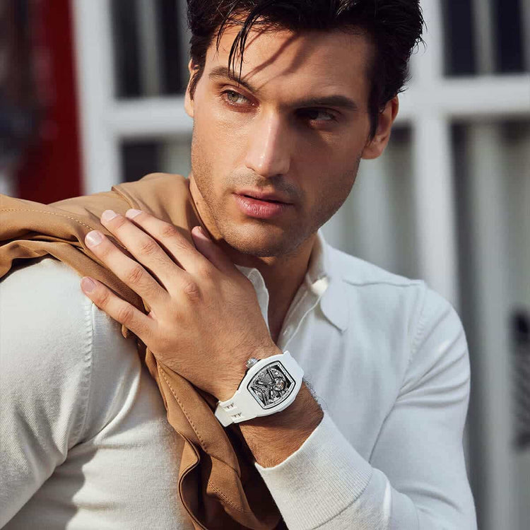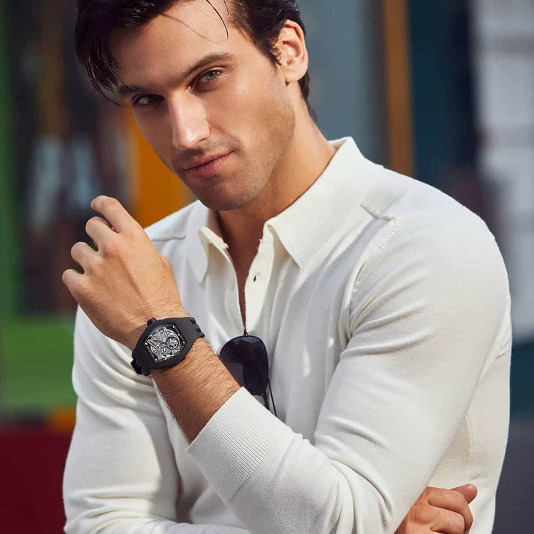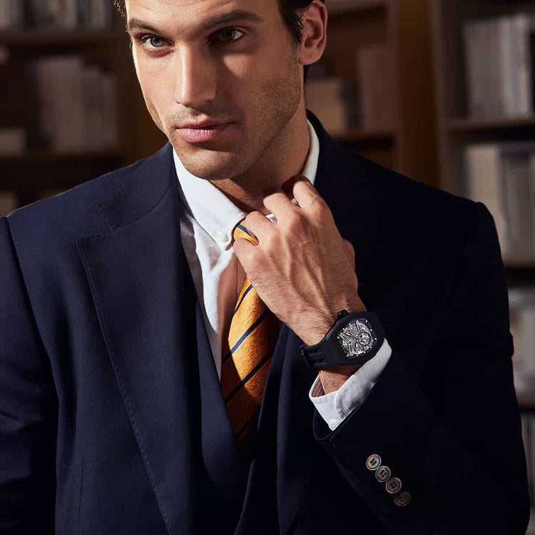 Bold contours meet refined geometry. Every angle of this timepiece is sculpted for strength, balance, and distinction. The openwork design reveals the rhythm of time, transforming every glance into a moment of admiration.