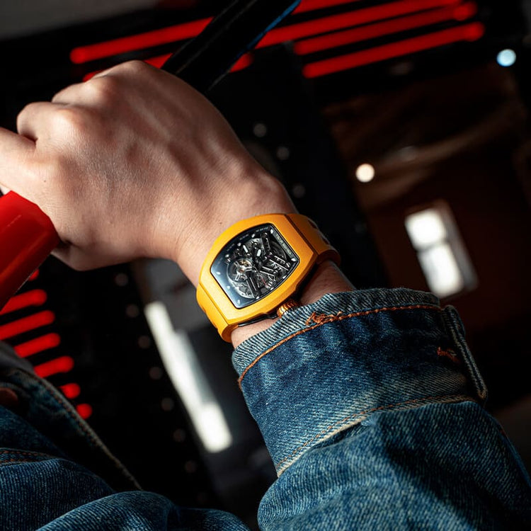 The skeleton dial unveils the beating heart of the automatic movement — a mesmerizing interplay of gears and balance. Every rotation reminds you of the precision and passion within.